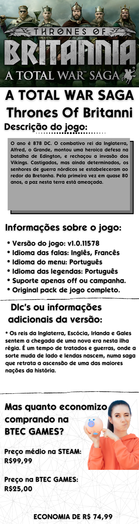 A TOTAL WAR SAGA THRONES OF BRITANNIA PC - ENVIO DIGITAL R$25,00