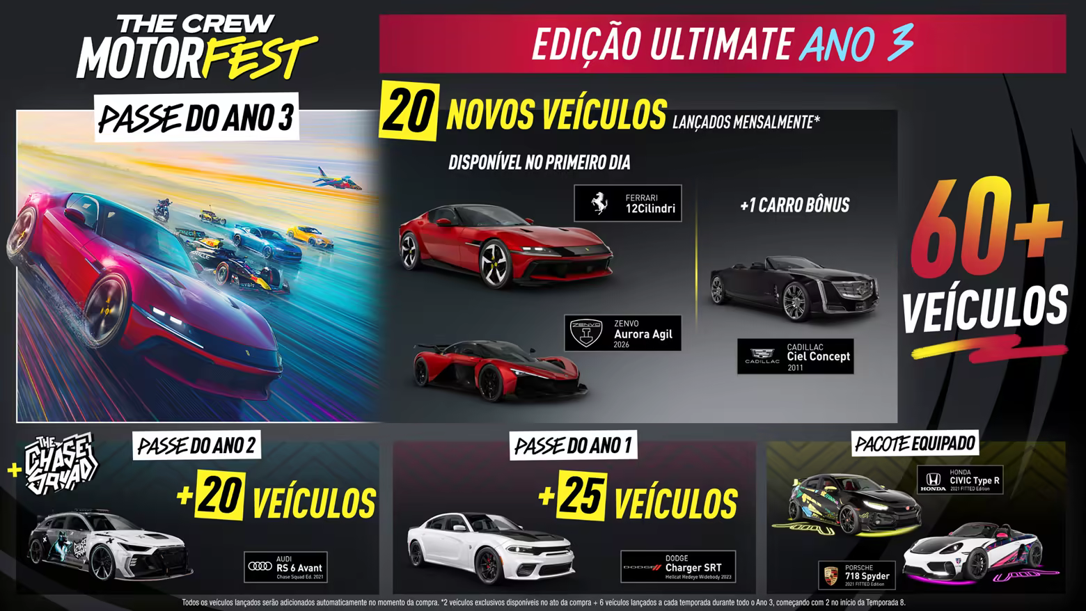 - Passe do Ano 3*, com 20 veículos adicionais + 1 veículo bônus.