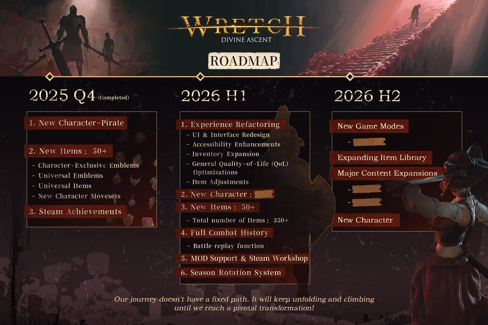 Atualmente, existem 5 classes jogáveis disponíveis, junto com quase 300 itens, equipamentos e ataques diversos para escolher e combinar.. Continuaremos melhorando e atualizando à medida que avançamos no desenvolvimento do jogo.